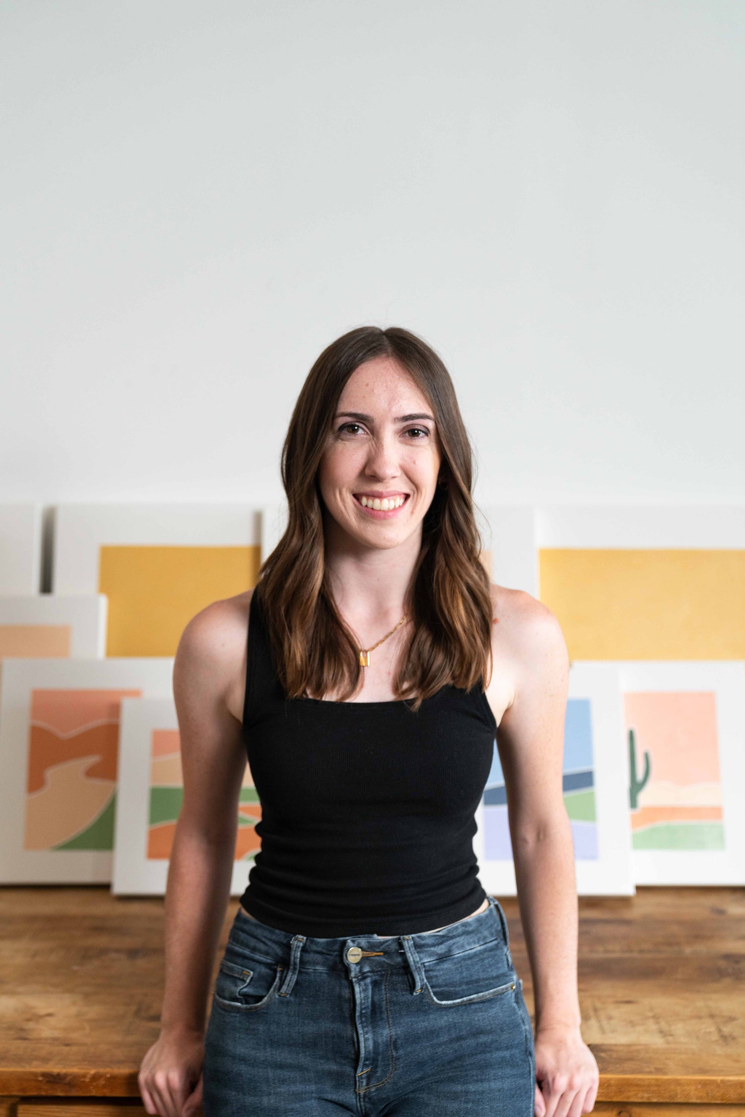 Hayley gathers inspiration from the sleek style of mid-century modern design and rich hues of southwestern landscapes. She blends principles of digital design with hand-painted acrylic techniques to create works of art featuring smooth lines and organic shapes.