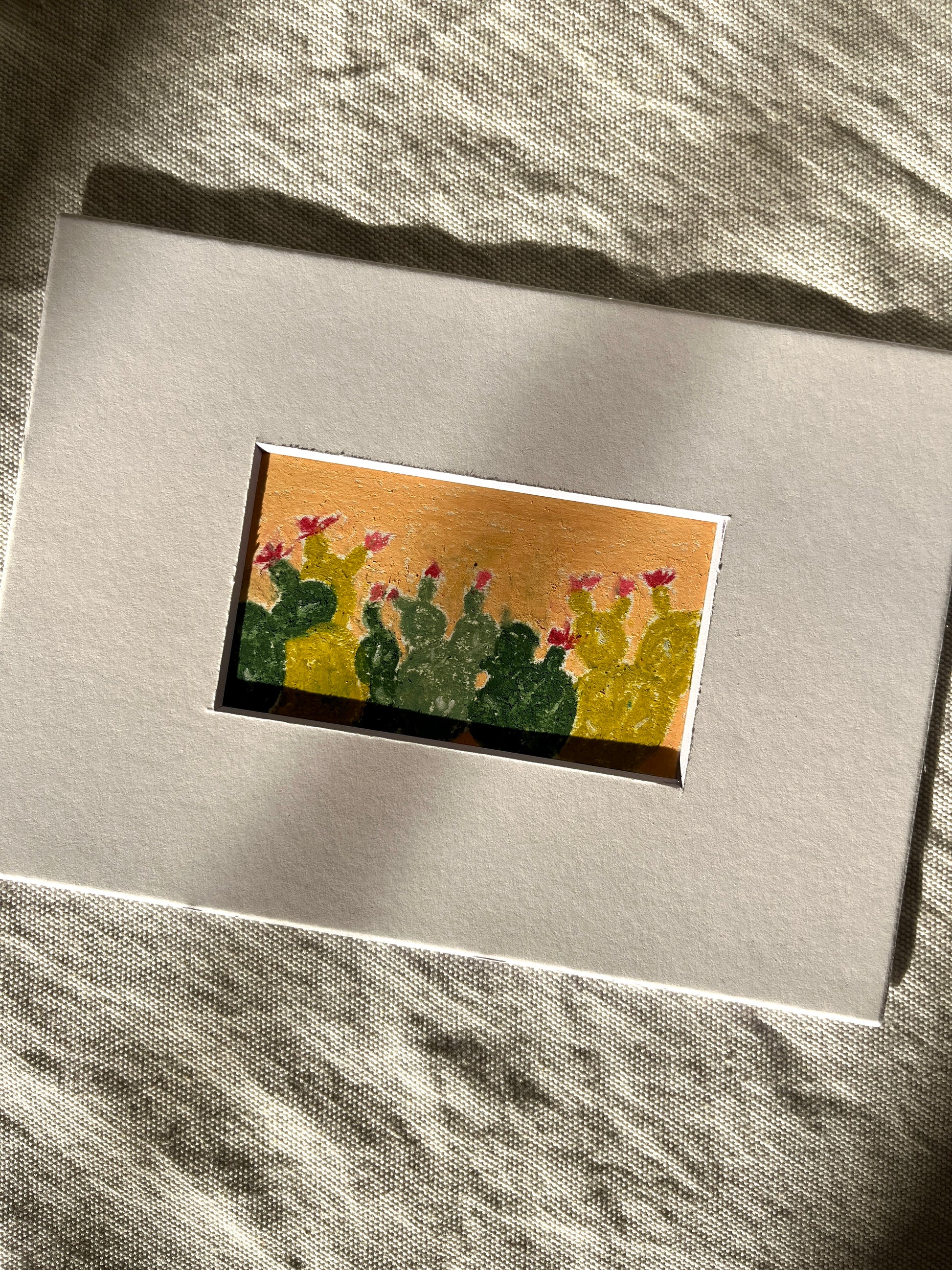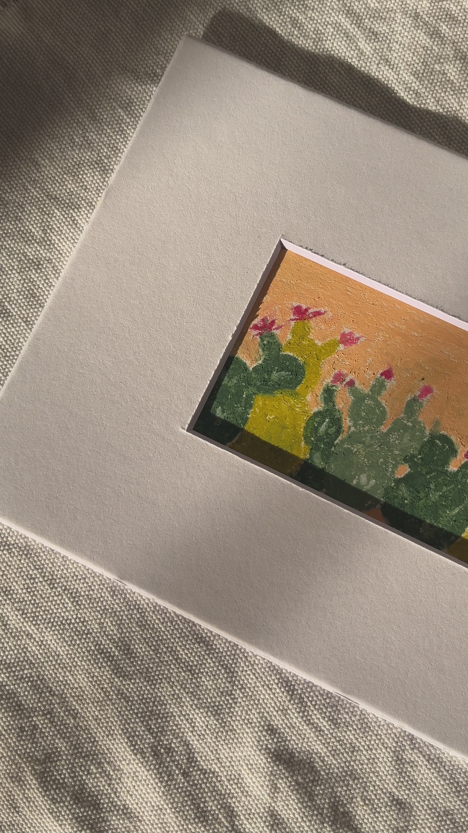 This painting was inspired by the experience of being honest with God, even when it feels vulnerable and ugly. Like the prickly cactus, you may feel this kind of honesty will sting, but it will actually lead to experiencing deeper love. May you receive God's love as you bravely choose to be honest with him.