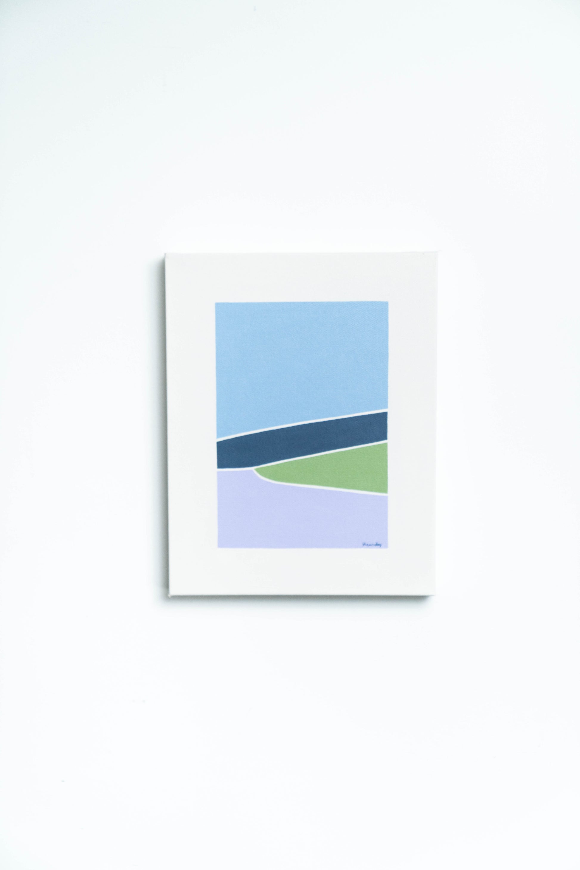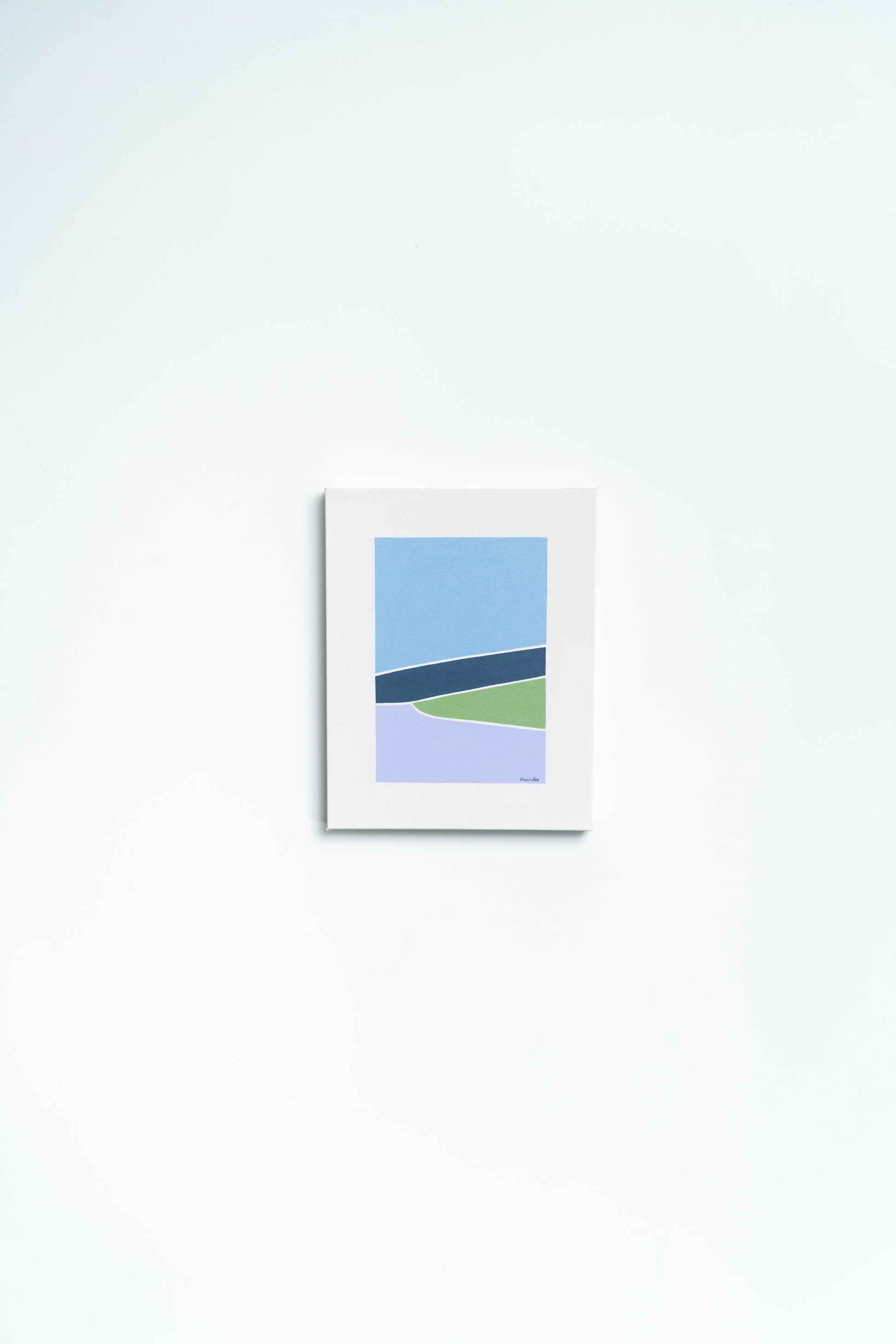 Original landscape. Acrylic painting on a 1 1/2in deep panel with wire on back. A minimalist abstract landscape in blue, purple, and green hues. Clean lines and bold colors inspired by the desert. This painting includes shipping within the US.