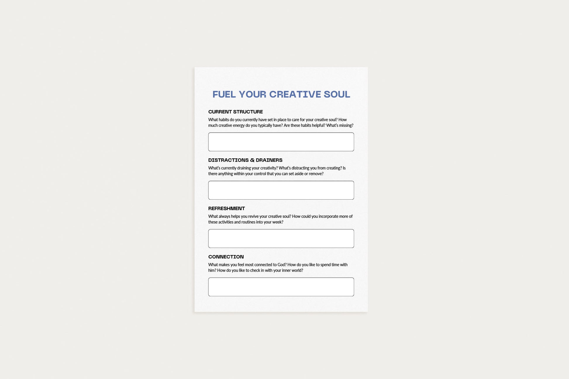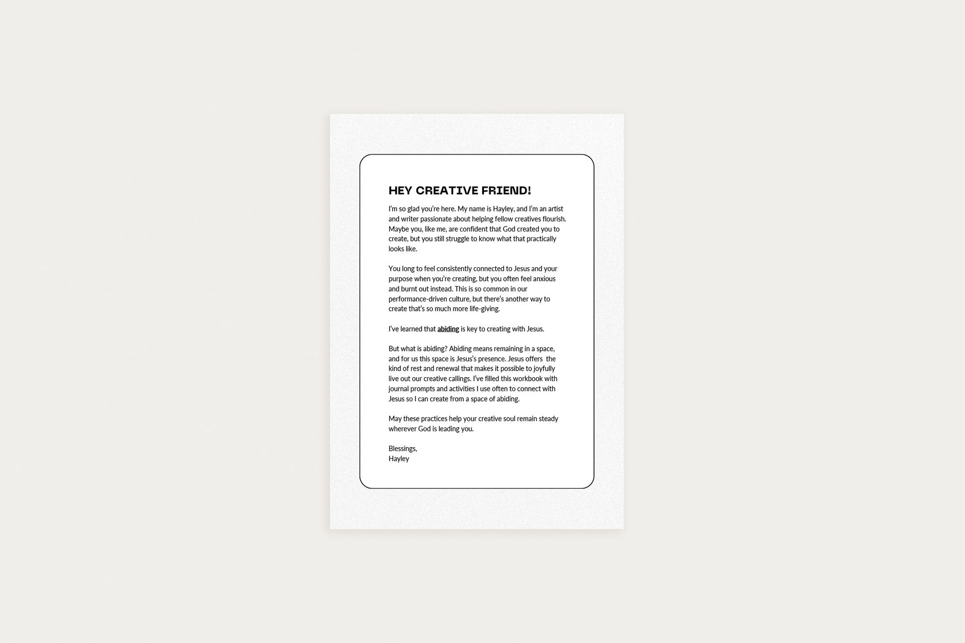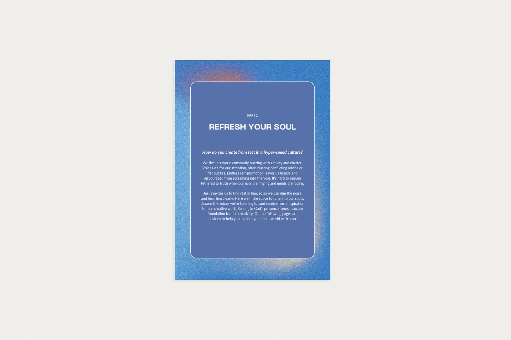 Explore 20 pages of prayerful prompts and practices crafted with Christian creatives in mind. Discover Jesus's invitation to rest and renewal that makes it possible to joyfully live out of your creative calling.